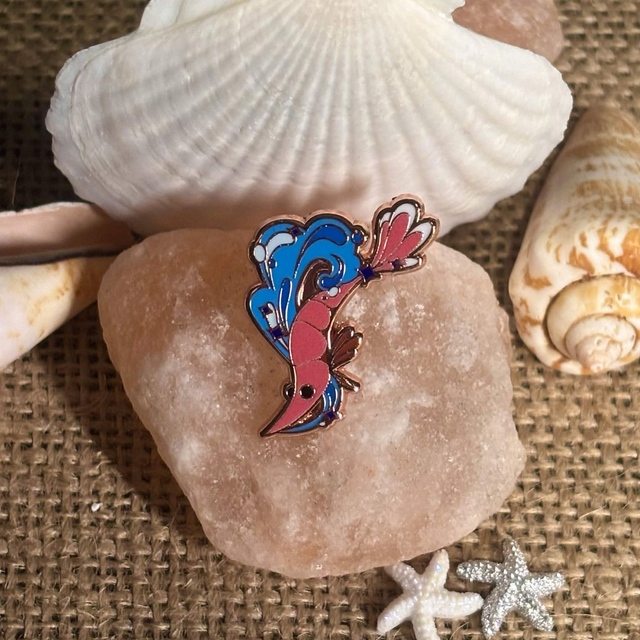 Avec son design inspiré de l’univers océan, ce pin’s est idéal pour afficher ton amour des créatures marines avec une touche originale et artisanale. À porter seul ou assorti à ta peluche crevette, il apporte une note fun et délicate à ton style.